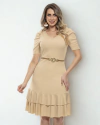 Vestido Clássico com Saia Godê e Babado
