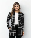 Casaco Alongado em Estampa Pied-de-Poule com Mangas Longas