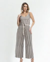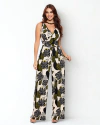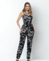Macacão Estampado Pantalona com Faixa e Alças Finas