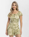 Macaquinho Ciganinha Estampado com Babado Embutido no Decote