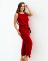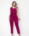 Macacão Pantalona Vermelho Com Decote Redondo e Sem Mangas