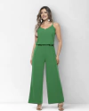 Macacão Verde Pantacourt Com Faixa E Textura Sofisticada
