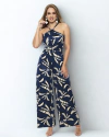 Macacão Pantalona Estampado com Alças Finas e Decote Coração