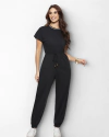 Macacão Cinza Jogger com Mangas Bufantes e Decote Redondo