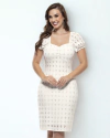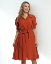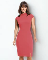 Vestido Clássico com Decote Redondo e Mangas Inteiras