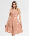 Vestido Clássico com Transpasse e Estampa, Saia Reta