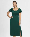 Vestido Midi com Fendas Laterais e Decote Redondo