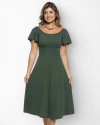 Vestido Midi Laranja Com Decote Quadrado E Saia Godê