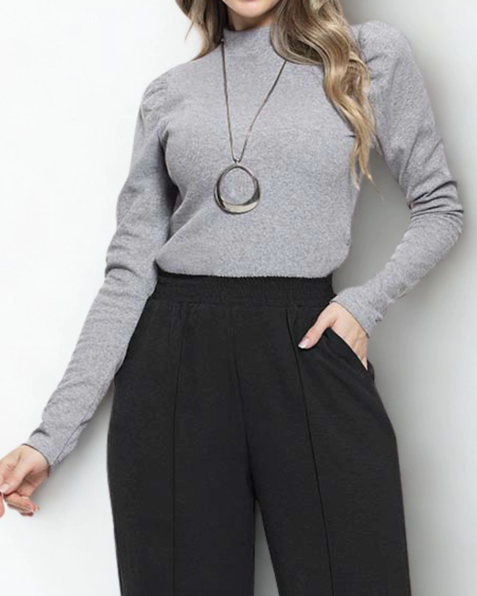 Com design atemporal e acabamento refinado, esta blusa cinza é a escolha perfeita para quem busca elegância e conforto em produções femininas nos dias mais frescos.