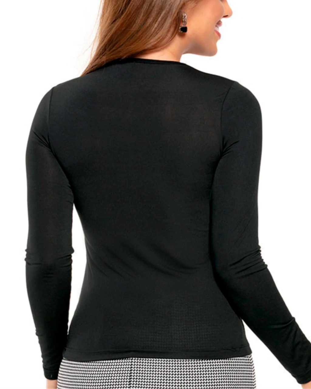 Modelagem Justa ao Corpo: garante mobilidade e conforto, ideal para usar como camada base ou como peça única em produções minimalistas.
