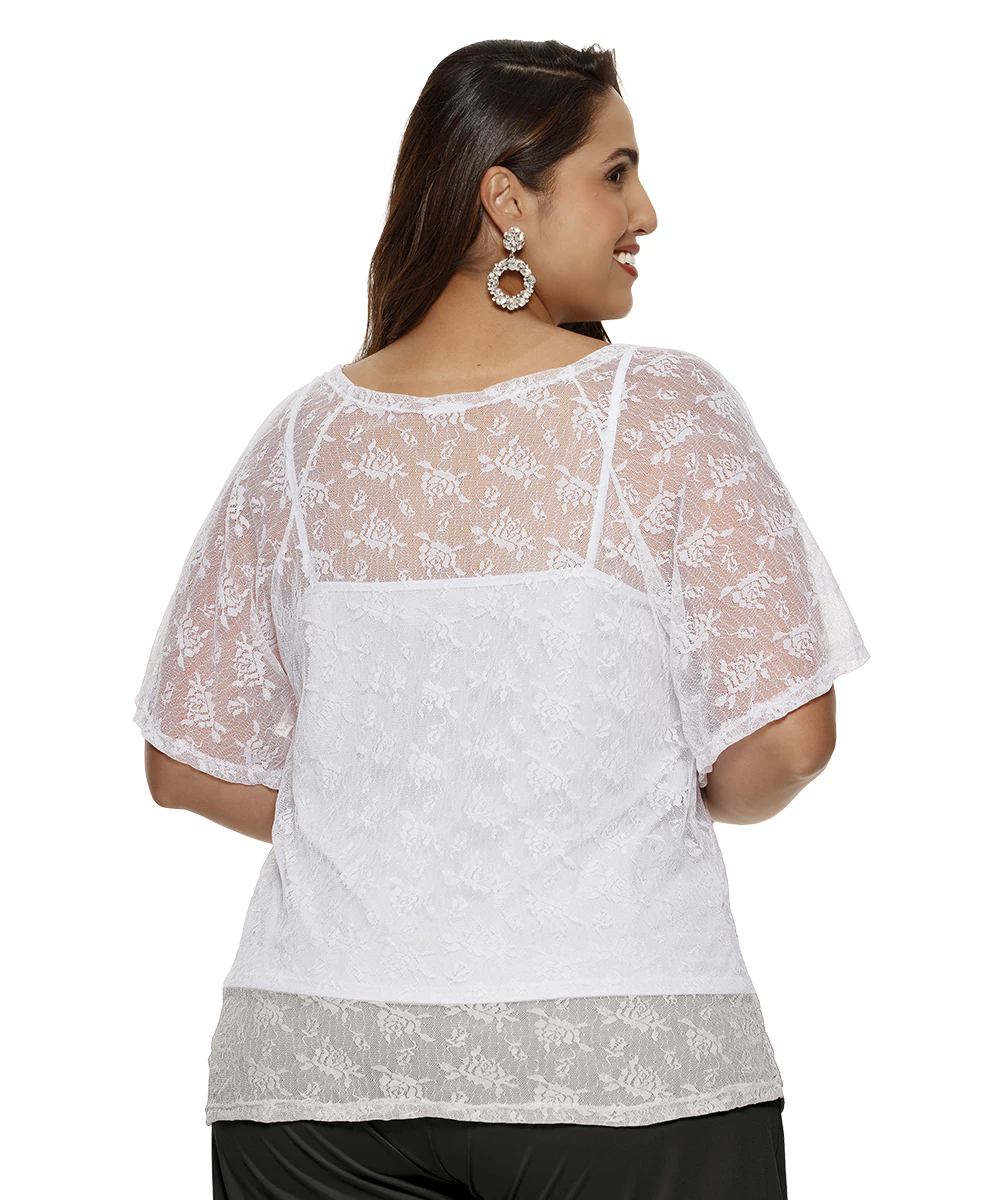 Conjunto Com Bata Em Renda E Blusa Interna – Moda Plus Size
