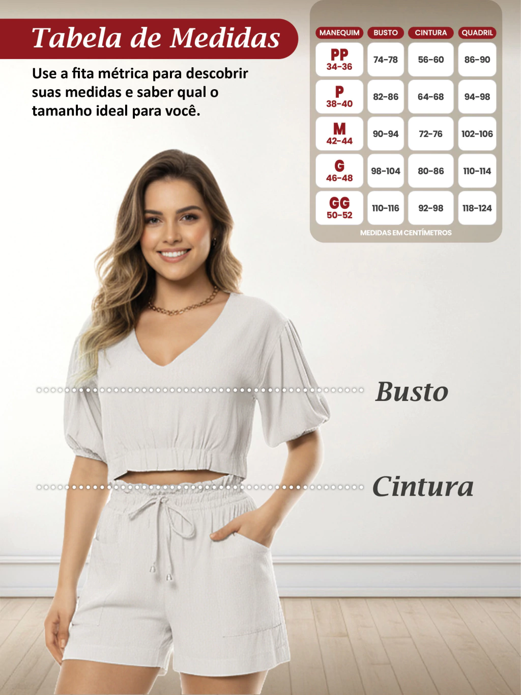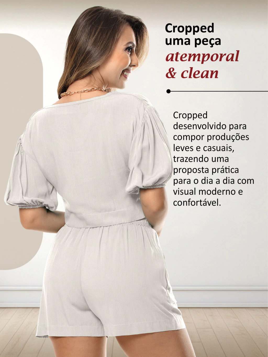 Cropped com Mangas Bufantes – Moda Feminina Ref.: 711802 Cor: Off-white Delicado, leve e moderno, este cropped confeccionado em 100% viscose foi desenvolvido para proporcionar frescor, fluidez e um caimento impecável. A peça combina tendência e conforto, com detalhes que valorizam a parte superior do corpo e criam um visual atual para diversas composições. Decote: O decote em “V” alonga a silhueta e destaca o colo com elegância, trazendo equilíbrio ao design leve e sofisticado da peça. Busto: O busto forrado garante conforto, segurança e melhor acabamento, mantendo o caimento estruturado durante todo o uso. Mangas: As mangas bufantes adicionam volume suave e um toque romântico ao visual, trazendo movimento e elegância sem comprometer a leveza da viscose. Tecido 100% Viscose: Com toque macio, leveza extrema e fluidez natural, a viscose oferece frescor e excelente caimento. Ideal para dias quentes, garante conforto absoluto sem perder a sofisticação. Um cropped elegante, fresco e moderno, perfeito para compor looks leves, femininos e cheios de estilo.