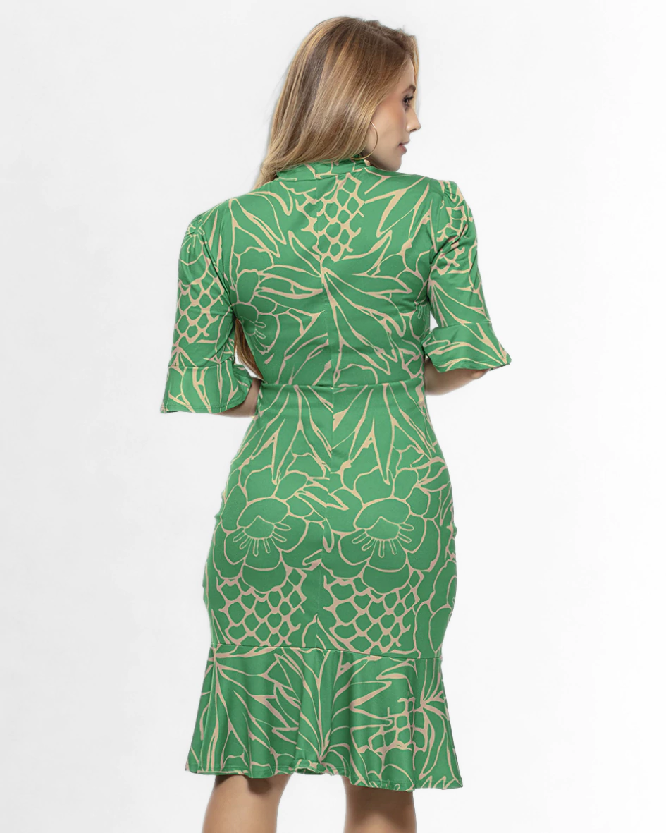 Este vestido clássico com gola alta e mangas sino é sinônimo de elegância e feminilidade. Sua modelagem harmoniosa e tecido confortável fazem dele uma peça versátil, perfeita para quem busca estilo e sofisticação em todas as ocasiões.
