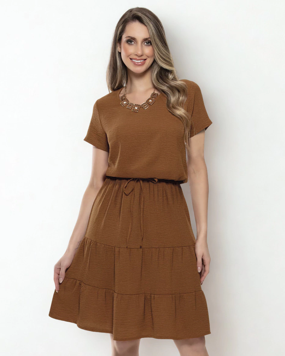 Com corte equilibrado e acabamento impecável, este vestido é uma peça essencial para quem busca unir elegância, conforto e feminilidade em qualquer momento do dia.
