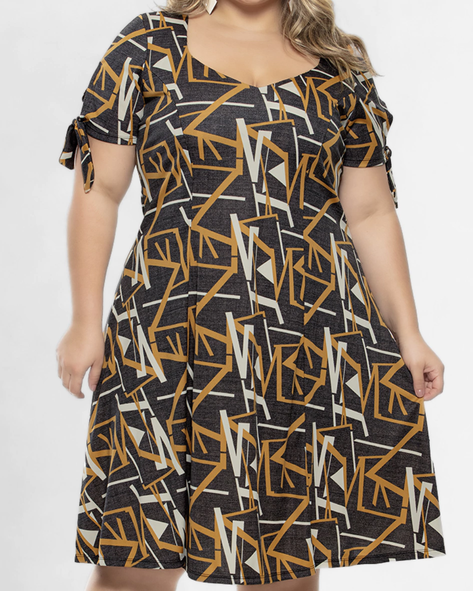 Decote Quadrado: valoriza o colo com sofisticação e traz estrutura ao visual, equilibrando a estampa geométrica.