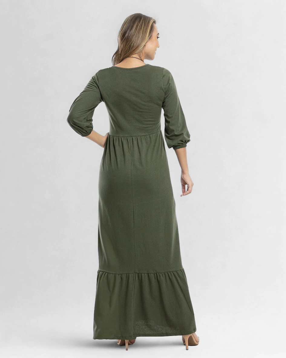 Com modelagem longa, tecido confortável e detalhes que valorizam a silhueta, o vestido longo com mangas bufantes e babado une sofisticação, praticidade e feminilidade. Ideal para passeios casuais, eventos de meia estação ou ocasiões especiais que pedem estilo e conforto.