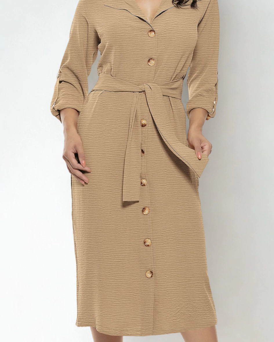 Este vestido max com botões e faixa é a perfeita união entre elegância e praticidade. Sua modelagem fluida e o tecido de excelente caimento garantem conforto e versatilidade, tornando-o ideal para quem deseja um visual refinado, moderno e funcional em qualquer ocasião.
