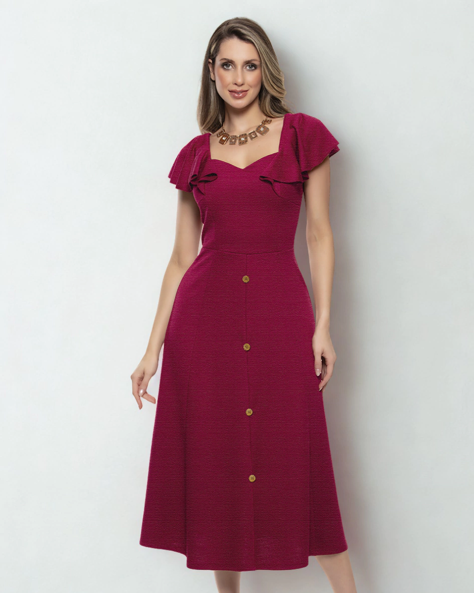 Botões decorativos: Posicionados na frente da saia, agregam charme e elegância sem comprometer o conforto.