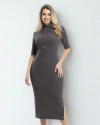 Tecido Malha Gorgurão: estruturado, encorpado e confortável, com textura levemente listrada que garante caimento firme, valorizando a silhueta sem marcar.