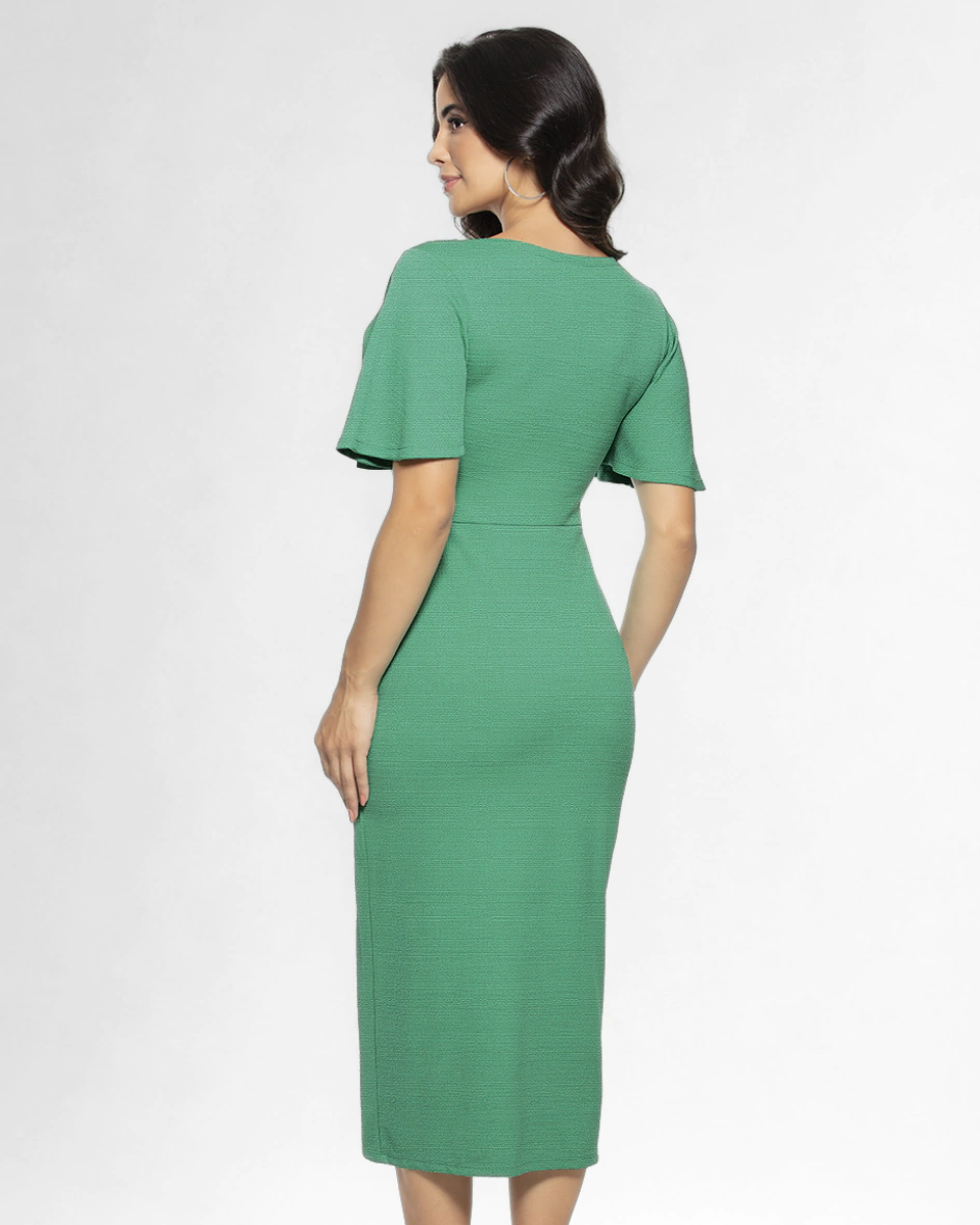 Decote em V: alonga o colo e valoriza a feminilidade com sofisticação e delicadeza.