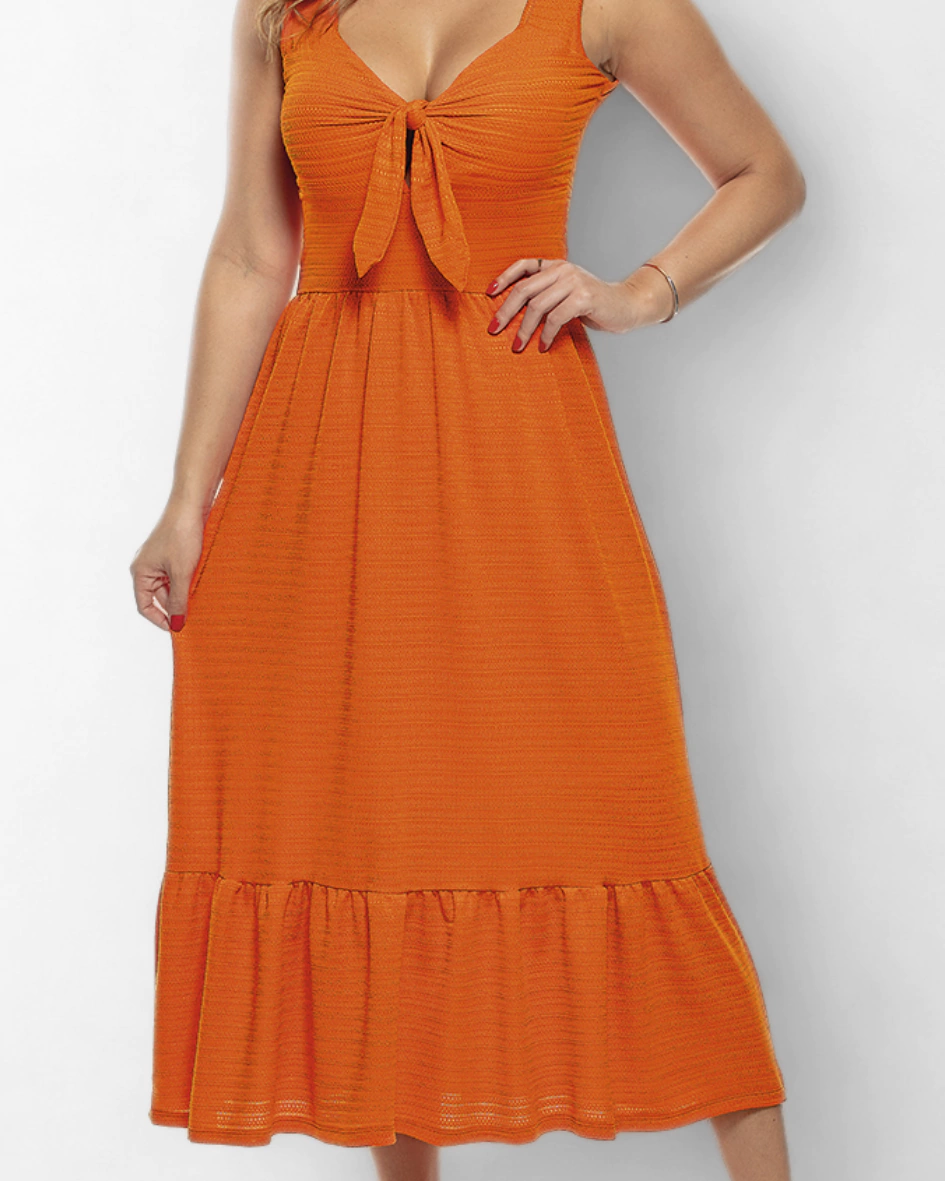 Decote com laço frontal: Valoriza o colo com elegância e adiciona um toque feminino e moderno.
