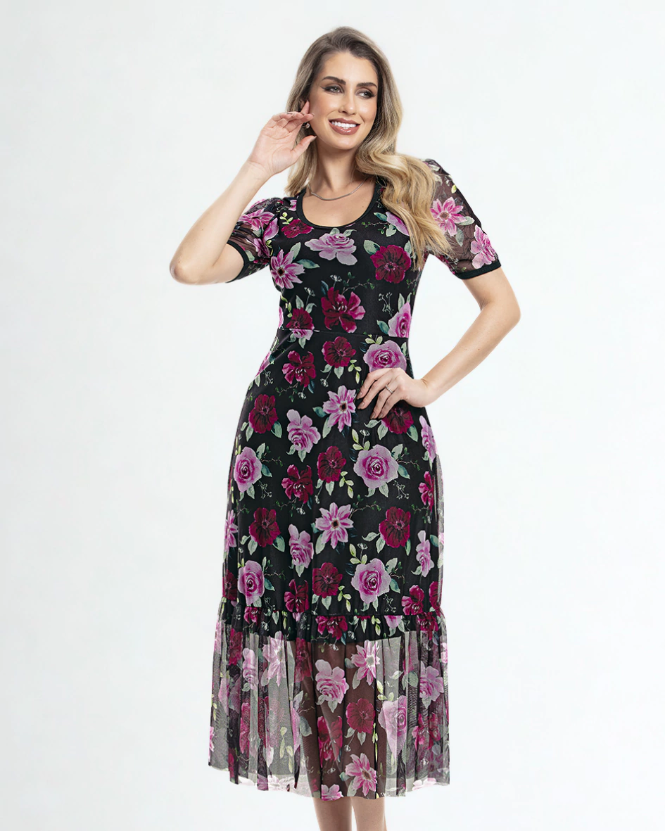 Este vestido maxi em tule com estampa floral une delicadeza, sofisticação e modernidade. Com caimento impecável e detalhes encantadores, é perfeito para quem deseja se destacar com estilo e feminilidade em qualquer ocasião.