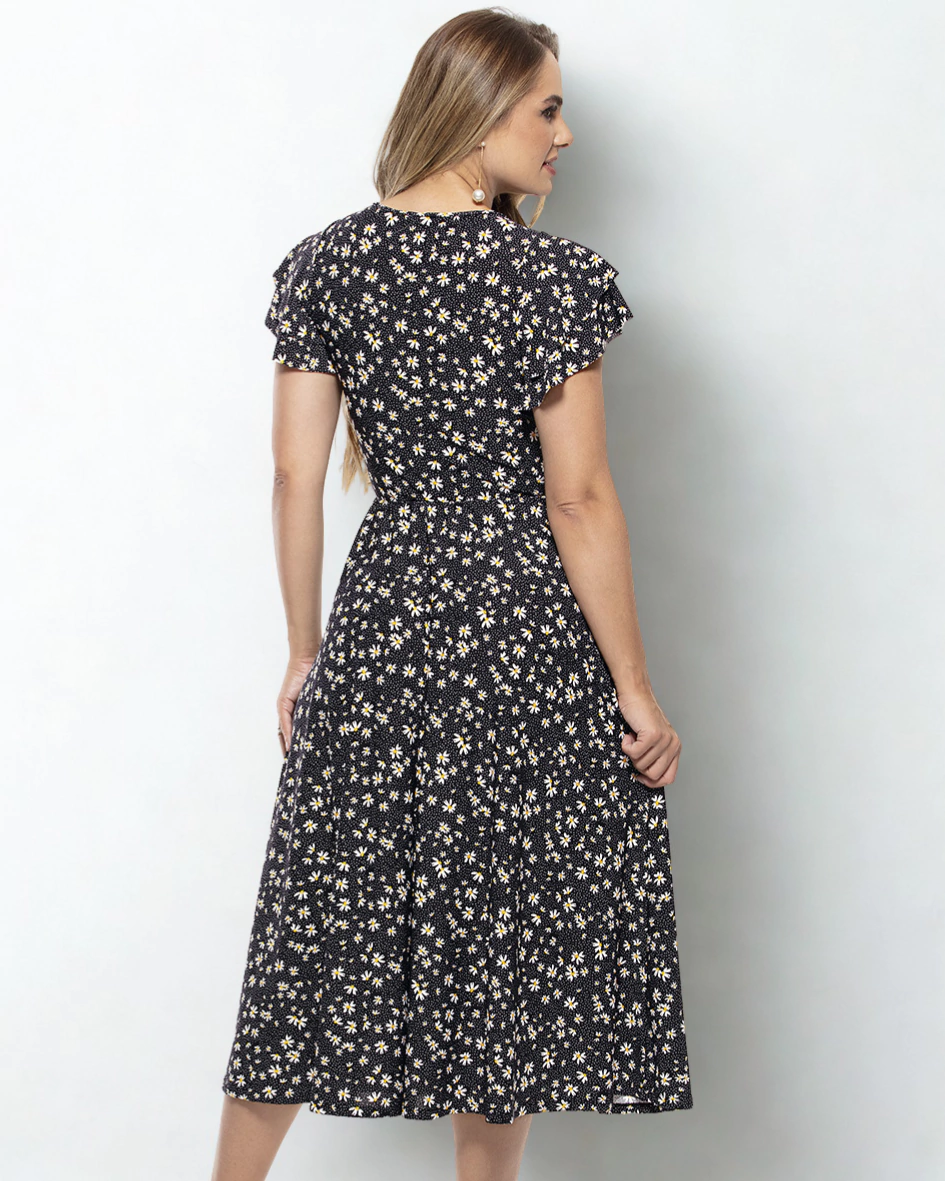 Como usar: combine com sandálias, flats ou salto médio para produções elegantes e discretas em eventos formais ou encontros sociais. As mangas godês e a estampa liberty permitem criar um look sofisticado sem perder modéstia e conforto.