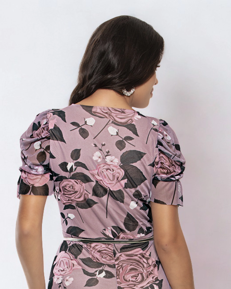 Este vestido midi com mangas bufantes é a escolha ideal para quem busca romantismo, delicadeza e estilo em uma peça versátil, valorizando a silhueta com conforto e charme.