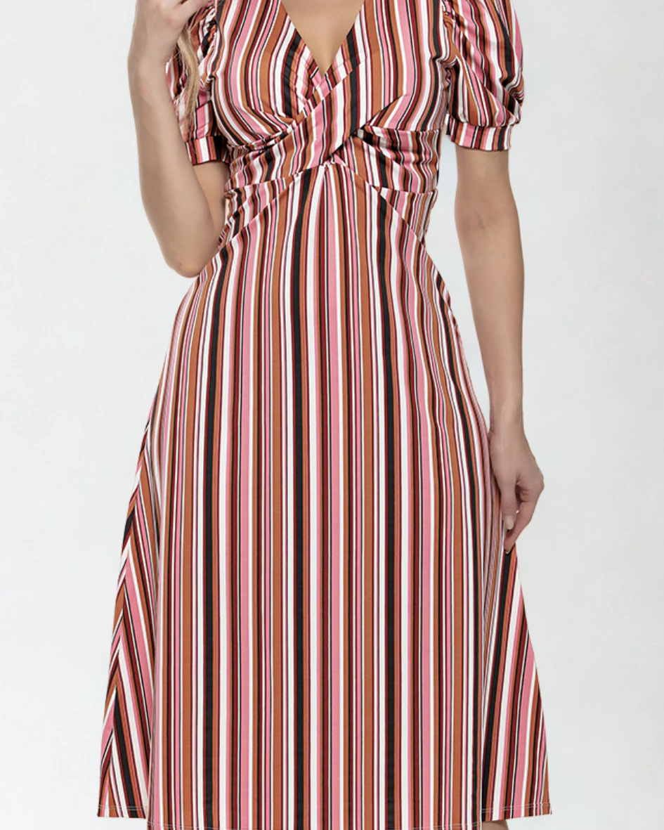 Com um equilíbrio perfeito entre romantismo, sofisticação e praticidade, este vestido midi estampado é a escolha ideal para quem deseja estilo e conforto em qualquer ocasião.
