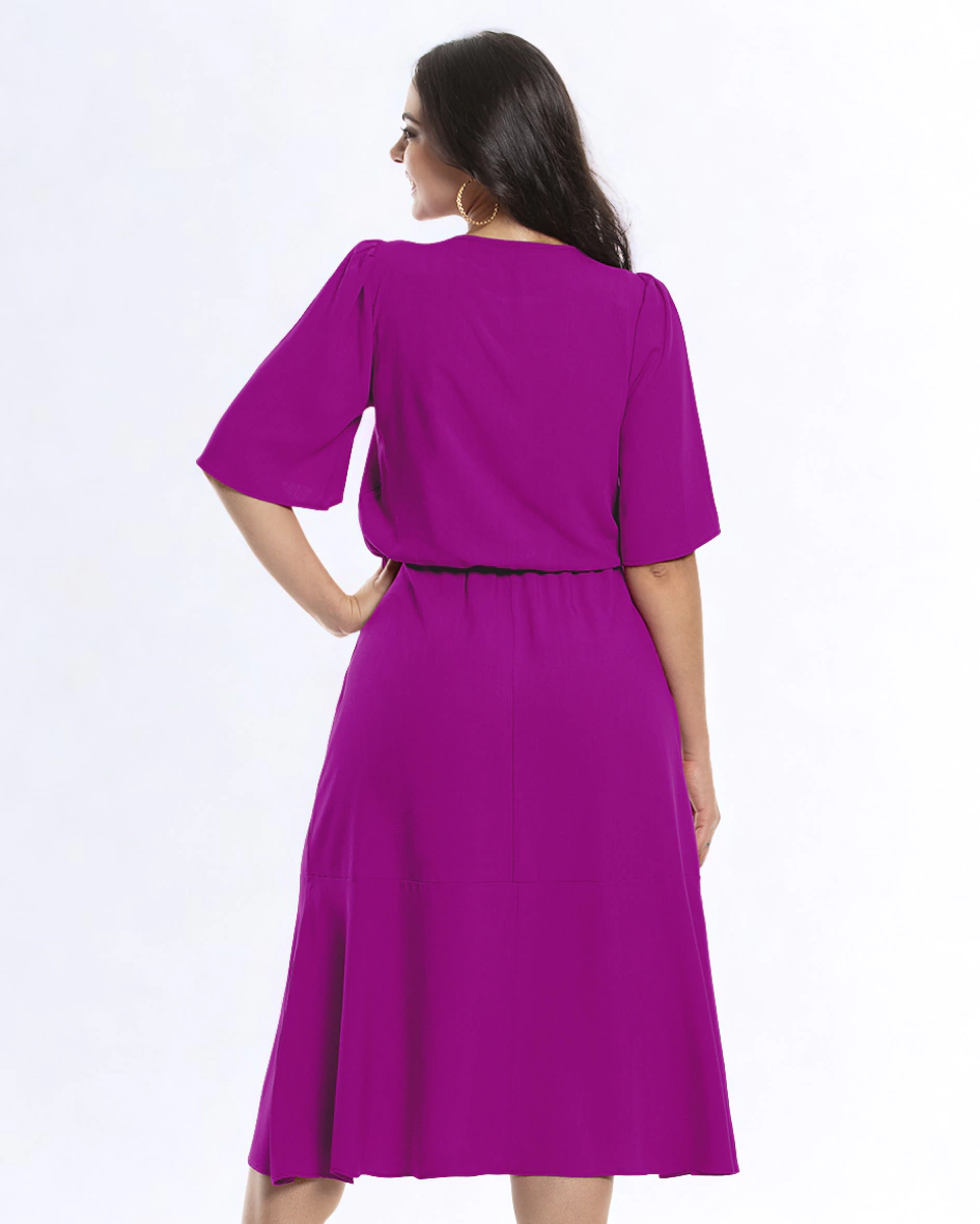 Com design moderno e acabamento sofisticado, este vestido midi em viscolinho é perfeito para mulheres que buscam elegância, conforto e estilo em ocasiões especiais.