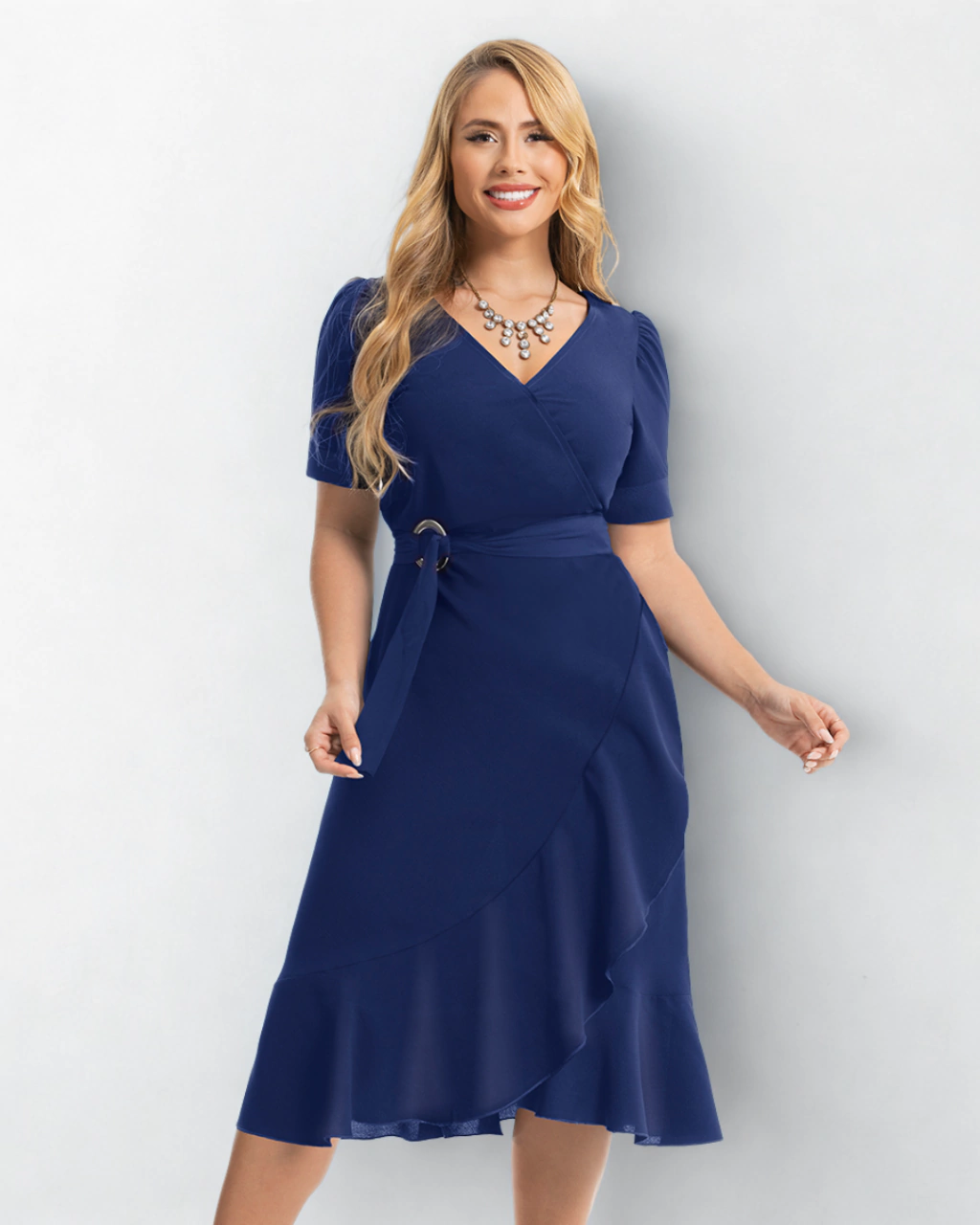 Elegante, fluido e atemporal, este vestido midi é a escolha perfeita para quem busca um visual impecável em qualquer ocasião, unindo charme clássico, conforto e estilo com naturalidade.