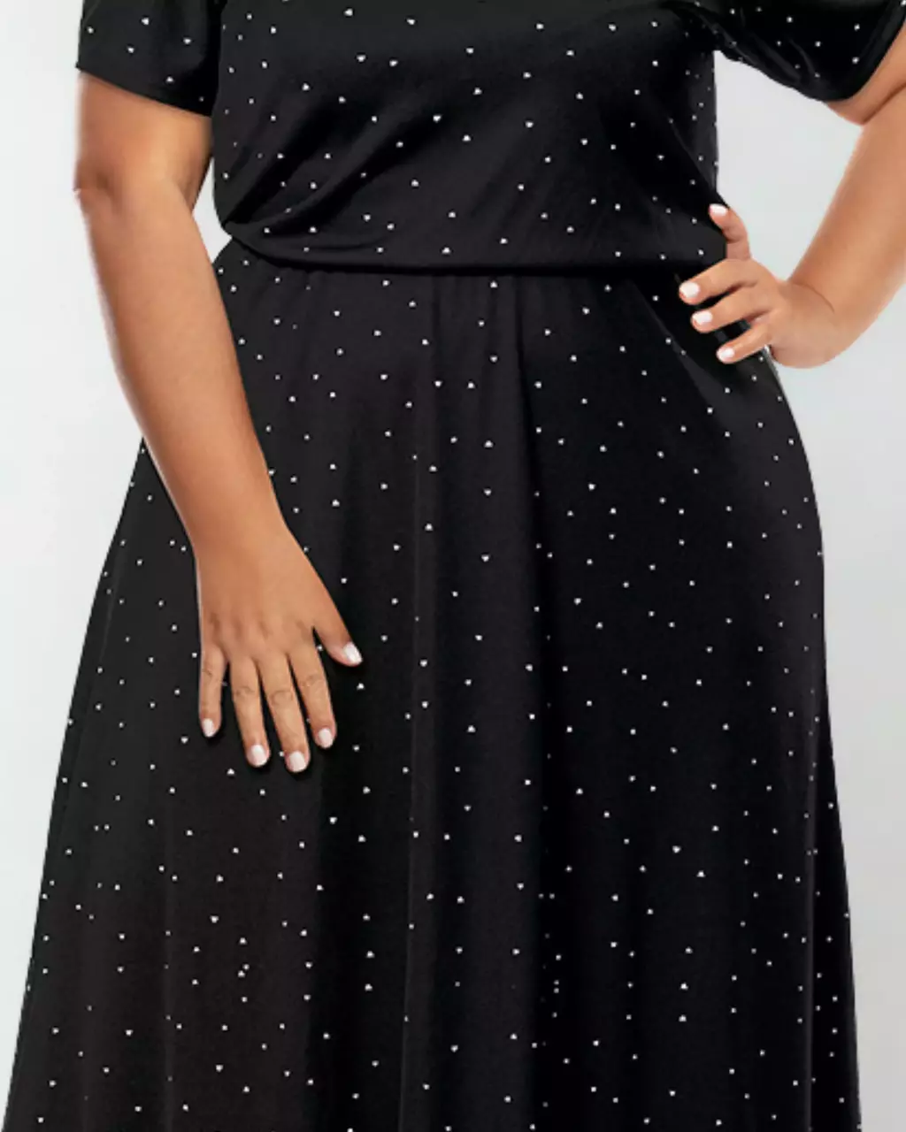 A estampa Poá em preto e branco permite combinações versáteis com acessórios e calçados. Use com salto e joias para eventos formais ou com sandálias e acessórios discretos para ocasiões mais casuais.